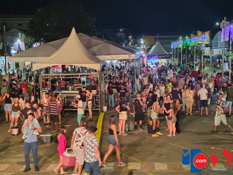 O Carnaval 2026 em Muzambinho teve início na noite desta sexta-feira (13), na Avenida Dr. Américo Luz, reunindo foliões de todas as idades para a abertura oficial do Muzafolia 2026. A festa começou com o grupo muzambinhense Os Dragões, que levaram ao público as tradicionais marchinhas carnavalescas. Na sequência, o DJ Labanca comandou o som com músicas eletrônicas, e a Banda Papauê encerrou a noite com muita animação até o fim da programação.