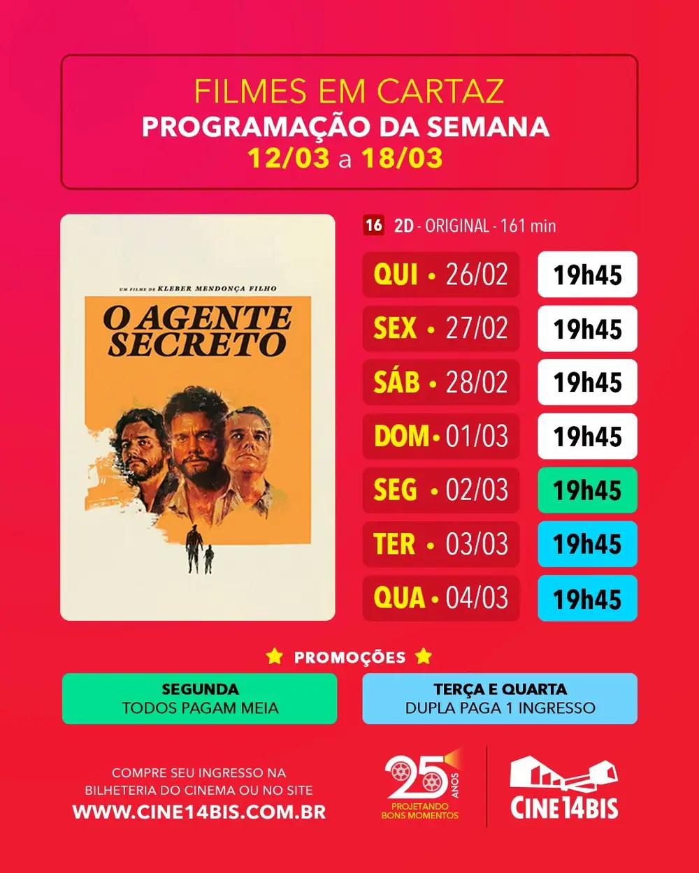 Mais Artigos DestaqueEconomia Imposto de Renda 2026: saiba os documentos necessários para declarar DestaqueMensagensNossa Cidade Da Praça Pedro de Alcântara Magalhães, onde a cidade respira e se reconhece. Porque nas praças, a vida repousa CulturaDestaqueNossa Cidade Exposição homenageia legado do artista Pedro Pioli Netto na Casa da Cultura de MuzambinhoDestaqueLazerParceirosCine14Bis: Confira a Programação Semanal Redação12 de março de 20262min0A nova programação do Cine14Bis já está no ar!Garanta seu ingresso no app e viva a experiênciawww.cine14bis.com.brRua Marcelino Rivera, 007 – Guaxupé/MGProgramação Post Views: 17cinemaentretenimentoGuaxupé