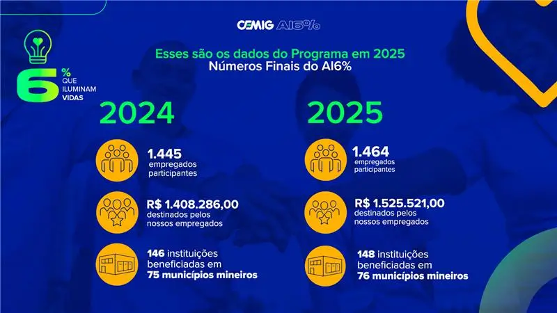 A Cemig, que possui diversas ações importantes de cunho social, valoriza esta iniciativa por meio do Programa “AI6% – Formando Cidadãos”. “Essa iniciativa contribui com centenas de entidades beneficentes, tanto pela Cemig, que destina 1% do seu imposto devido, quanto pelo incentivo aos seus empregados a destinarem até 6% do IR devido para os FIAs”, explica Anne Aline Assis, analista de Incentivos Sociais da Cemig.