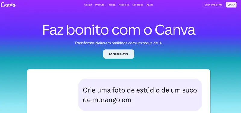 Existem muitas ferramentas de design de imagem no mercado. O Canva , por exemplo, é uma ótima plataforma para diversas tarefas de criação de imagens e gráficos. Suas ferramentas do Magic Studio permitem criar uma variedade de designs versáteis e atraentes com apenas alguns comandos simples.
