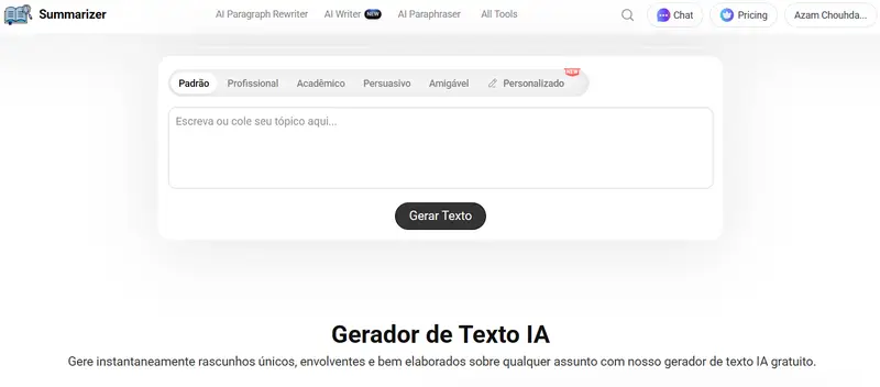 Muitos escritores agora usam plataformas de escrita com IA para acelerar a pesquisa, a escrita e a edição. Por exemplo, o Gerador de Texto com IA do Summarizer.org ajuda os escritores de diversas maneiras. Ele pode gerar ideias, criar rascunhos estruturados e auxiliar na melhoria do fluxo do conteúdo. Se um usuário precisa escrever uma postagem de blog, ele fornece rapidamente um ponto de partida a partir do qual pode desenvolver o texto. Se alguém está com dificuldades para escrever, a plataforma ajuda a continuar sem perder tempo.