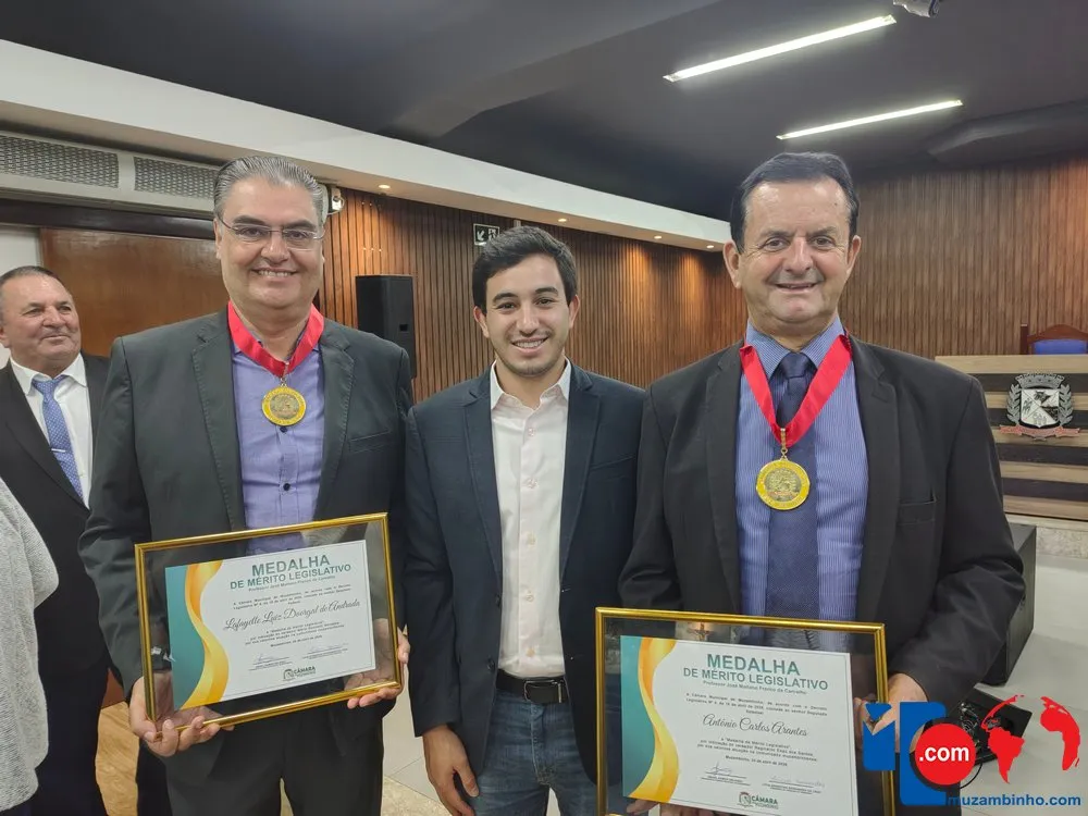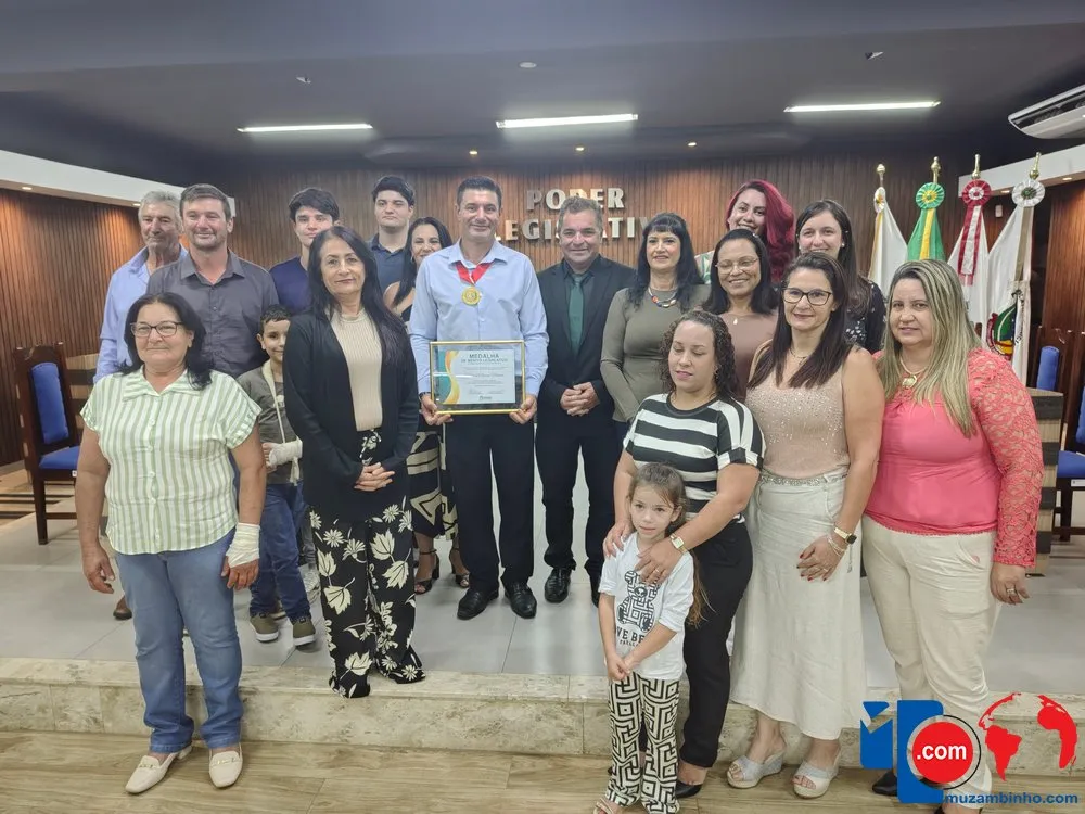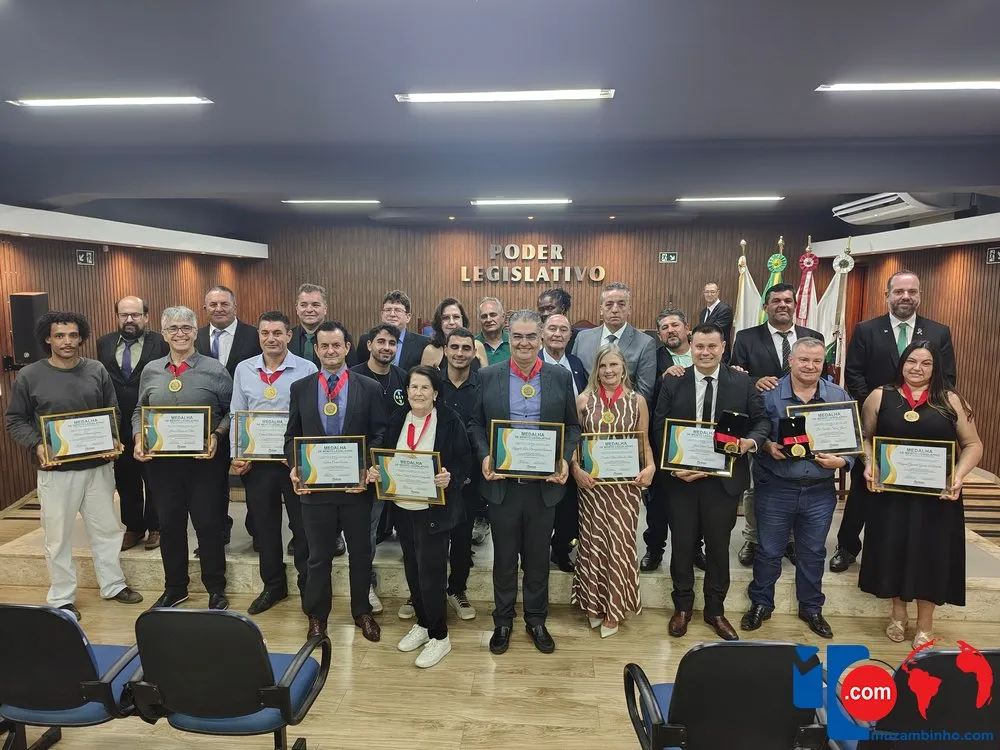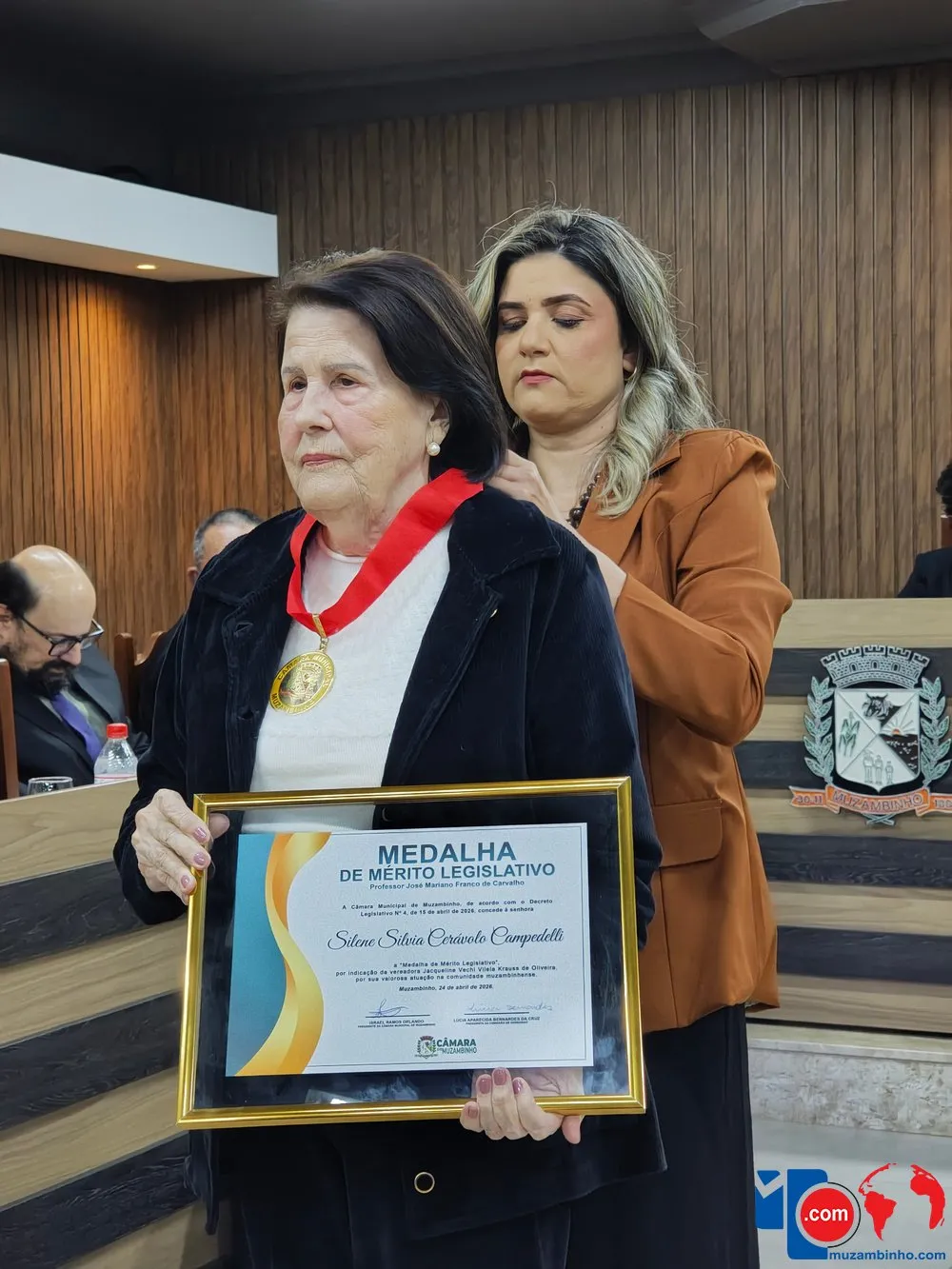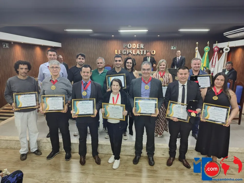 A Câmara Municipal de Muzambinho realizou, na noite desta sexta-feira, 24 de abril de 2026, uma solenidade especial para a entrega da Medalha de Honra ao Mérito Legislativo – Comenda Professor Dr. José Mariano Franco Carvalho. O evento aconteceu no Plenário da Casa Legislativa e reuniu familiares, amigos e autoridades para prestigiar os homenageados.