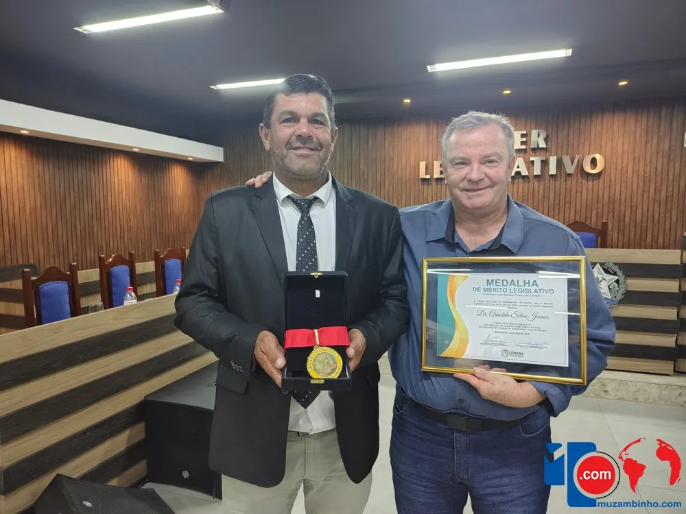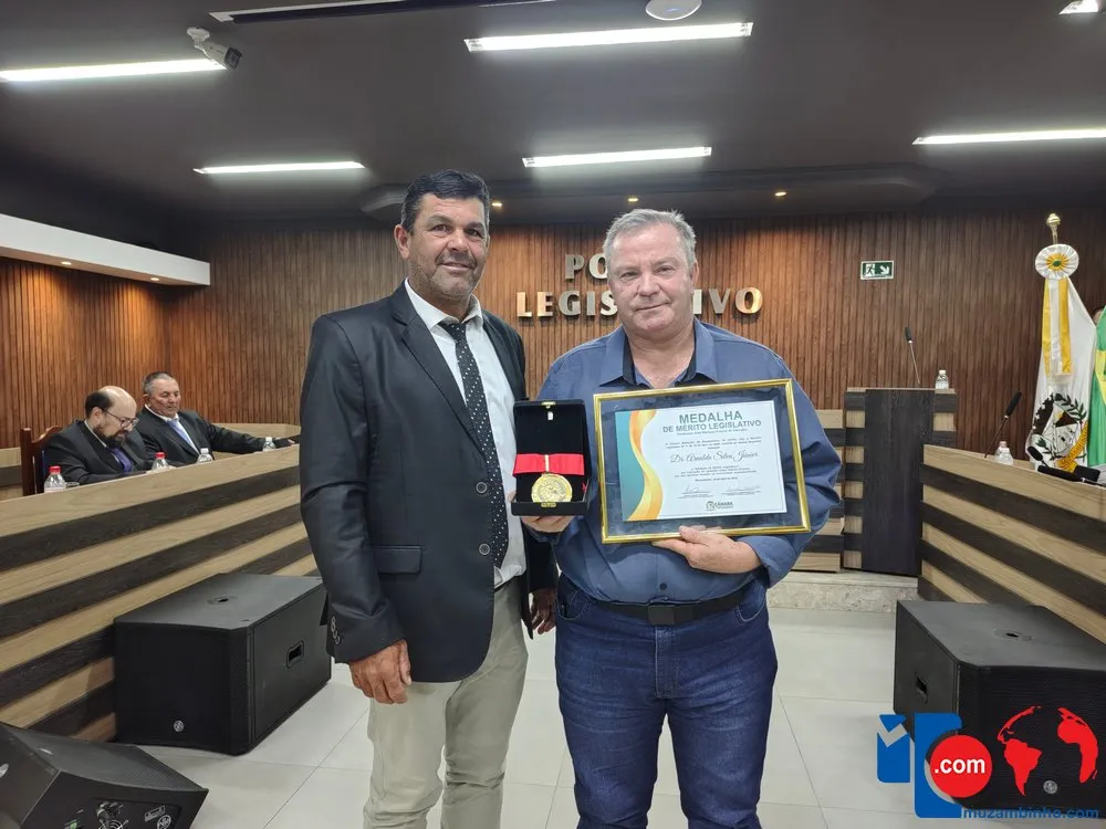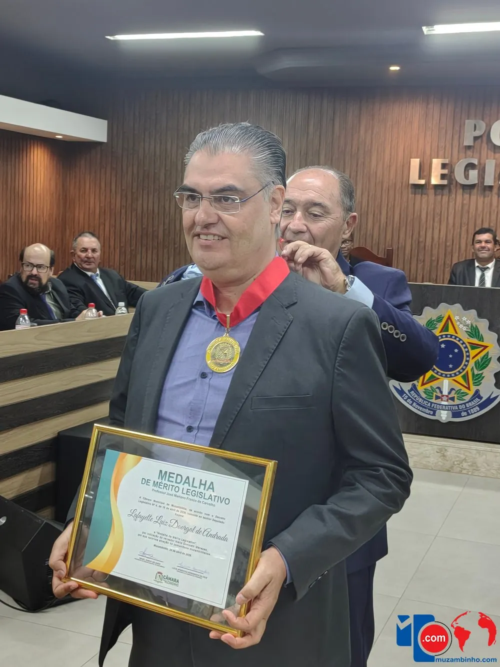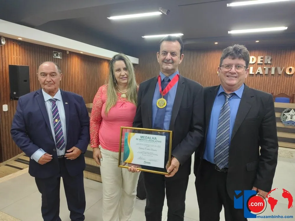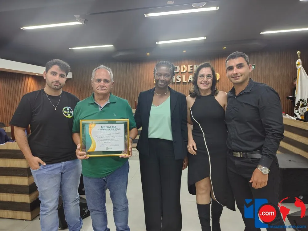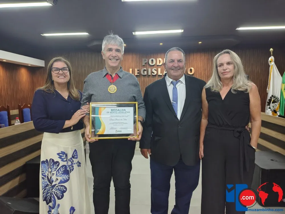 A Câmara Municipal de Muzambinho realizou, na noite desta sexta-feira, 24 de abril de 2026, uma solenidade especial para a entrega da Medalha de Honra ao Mérito Legislativo – Comenda Professor Dr. José Mariano Franco Carvalho. O evento aconteceu no Plenário da Casa Legislativa e reuniu familiares, amigos e autoridades para prestigiar os homenageados.
