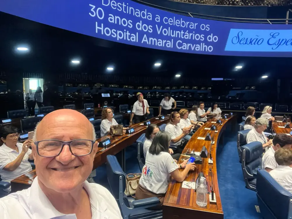 O trabalho solidário de Muzambinho ganhou destaque nacional nesta semana. No dia 28 de abril, voluntários da nossa cidade estiveram no plenário do Senado Federal, em Brasília, para uma sessão especial em homenagem aos 30 anos do voluntariado no Hospital Amaral Carvalho (HAC), de Jaú/SP.